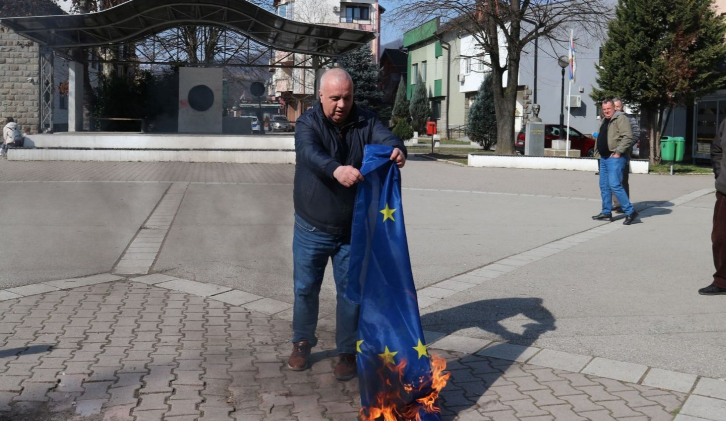 Policijskoj stanici Bratunac danas je prijavljeno paljenje zastave EU-a na Trgu Miloša Obilića u Bratuncu od osobe V. P., što je policija provjerom utvrdila.