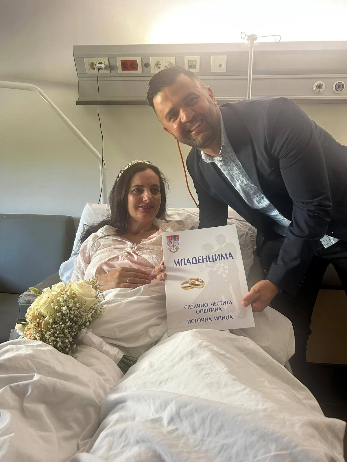 Kako nije bila u mogućnosti napustiti bolnicu, ceremonija opštinskog vjenčanja je organizovana u bolničkim uslovima.