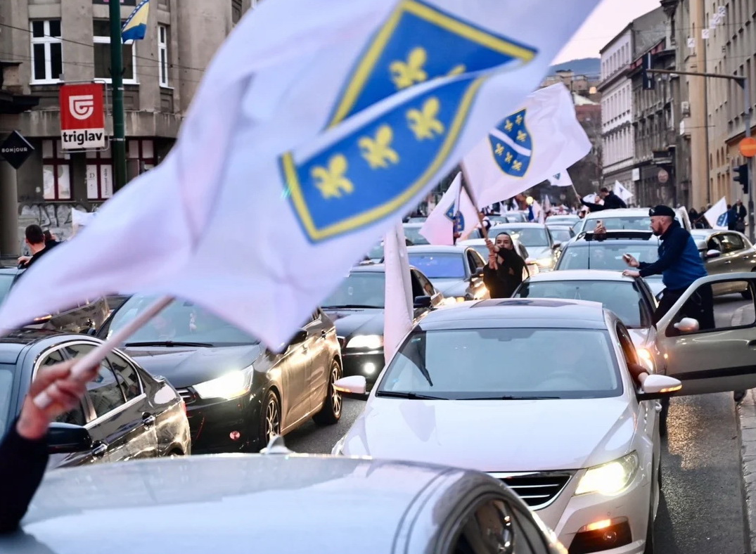 Zastave Bosne i Hercegovine i Republike BiH vijorile su se iz automobila koji su prolazili kroz glavni grad države dok su ih građani pozdravljali i snimali mobitelima.