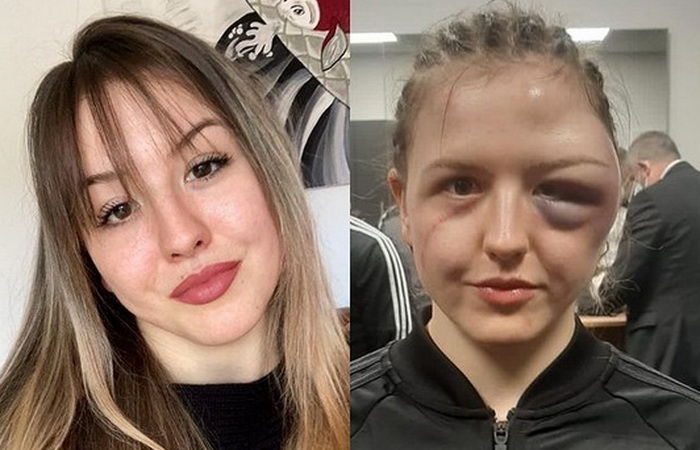 Njemačka bokserka na Instagramu je objavila fotografije lica prije i poslije borbe, na kojoj se vidi gotovo potpuno otečena lijeva strana glave, na kojoj se formirao masivni hematom oka.