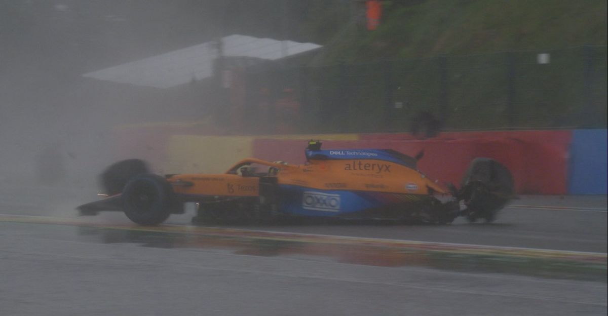 Na stazi u Belgiji zbog velikih kišnih padavina uslovi su bili izuzetno teški, a u Q3 dijelu kvalifikacija Lando Norris je doživio veliki incident. Britanac je izgubio kontrolu pri velikoj brzini i razbio je bolid.