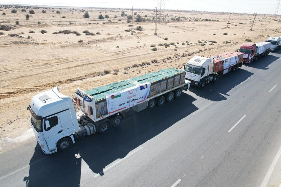 Udruženje Pomozi.ba jučer je iz Egipta prema Palestini poslalo još sedam šlepera sa prehrambenim paketima, brašnom i vodom, vrijednosti 182.205 KM. Sa ovim dijelom, Udruženje Pomozi.ba je stanovnicima Gaze do sada poslalo humanitarnu pomoć ukupne vrijednosti 852.026,51 KM.