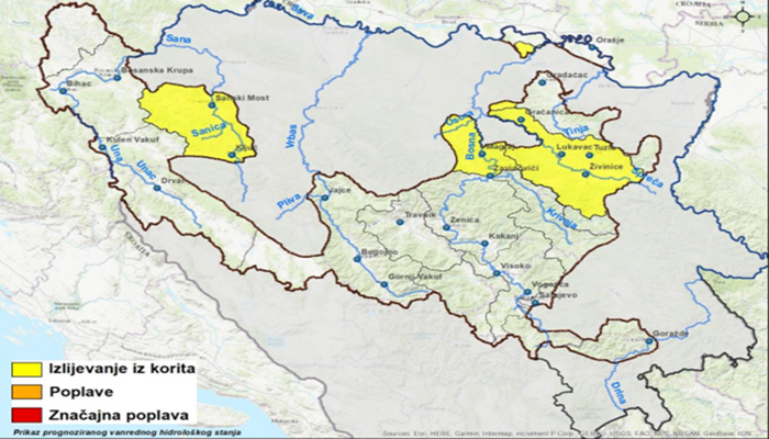 Opis prognoziranih vanrednih hidroloških stanja i mogućih posljedica dostupan je na slijedećem linku: www.voda.ba