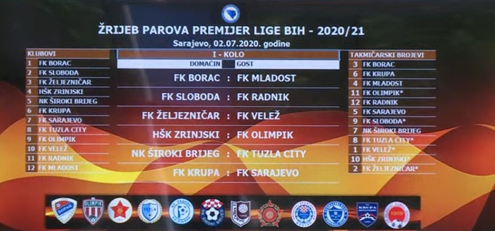 Žrijebanje parova za novu sezonu nogometne Premijer lige BiH obavljeno je danas u Nogometnom savezu BiH u Sarajevu.