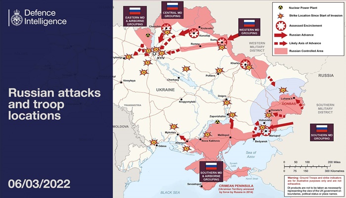 Ministarstvo odbrane Velike Britanije objavilo je novu mapu napada ruske vojske na Ukrajinu na kojoj se vide mjesta gdje se trenutno vode borbe, kao i koji dijelovi zemlje su pod ruskom kontrolom.