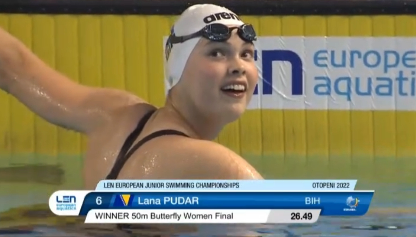 Pudar je tako postala evropska juniorska prvakinja u dvije discipline. Prethodno je Mostarka postala juniorska prvakinja kontinenta u disciplini 200 metara delfin, dok je u 100 metara delfin osvojila srebro.