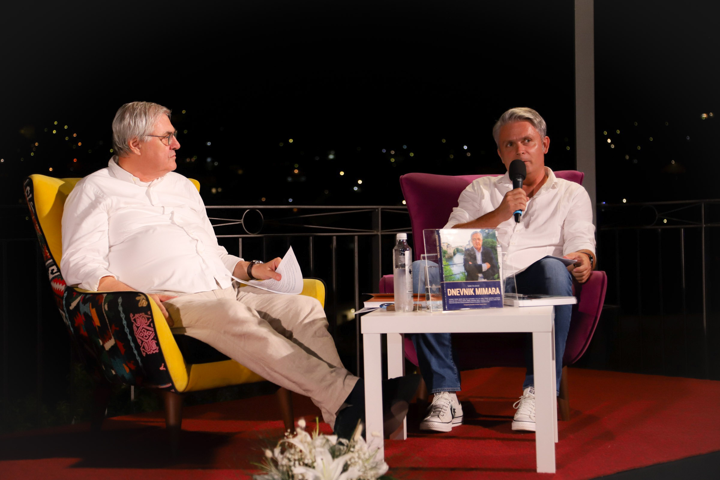 Uslijedila je promocija knjige “Dnevnik mimara“, koja sublimira desetogodišnje aktivnosti s ciljem obnove Starog mosta, kao i ideju da taj projekat okupi svijet, a most postane i bude spomenik mira. O djelu Safeta Oručevića govorili su recezenti prof. dr. Jasna Duraković, prof. dr. Hamid Čustović, urednik Elvedin Nezirović, te sam autor. Ministrica Duraković je kazala da je bilo teško suzdržati suzu tokom čitanja, odnosno tokom gledanja izložbe posvećene Starom mostu, uz zahvalnost što je dijelom važnog projekta, te čast što je recezent knjige.