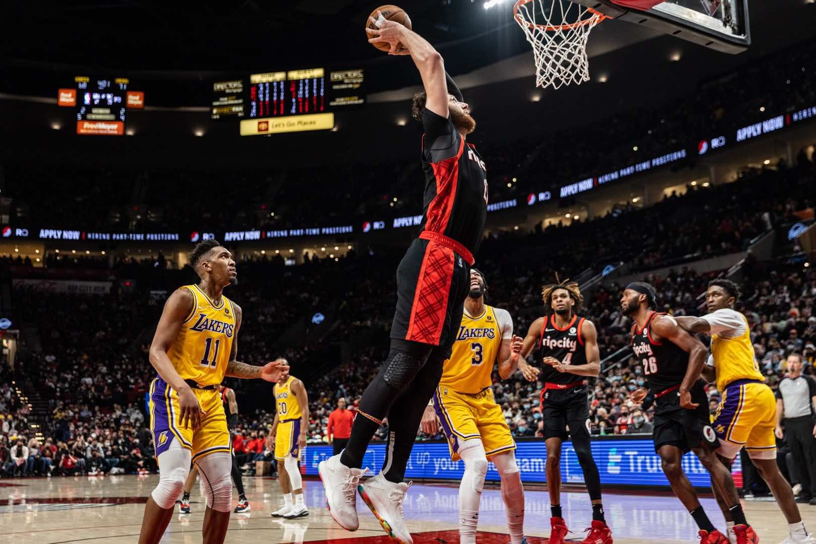 Trail Blazersi su u svom Moda Centeru slavili nakon tijesne završnice, a ključne poene za trijumf u finišu je postigao Anfernee Simons, kada je realizovao slobodna bacanja za 107:102 na tri sekunde prije kraja. Lakersi su tek ublažili poraz trojkom LeBrona Jamesa, meč je okončan rezultatom 105:107.