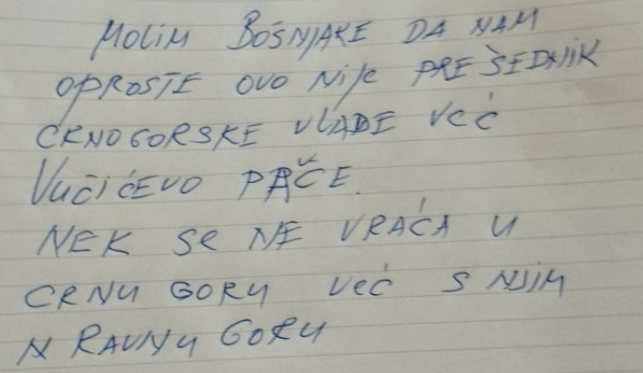 Pisac Abdulah Sidran objavio je poruku koju je dobio od crnogorskog slikara Rajka Todorovića Todora. U poruci koju je Sidran napisao na papiru izvinjenje je Bošnjacima nakon govora Dritana Abazovića danas u Srebrenici.