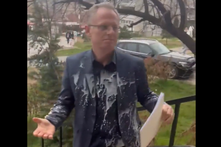 Aktivisti kosovske Socijaldemokratske partije (PSD) su na ulazu u zgradu Vlade Kosova u Prištini gađali potpredsjednika Vlade Besnika Bisljimija milkšejkom i tortom.