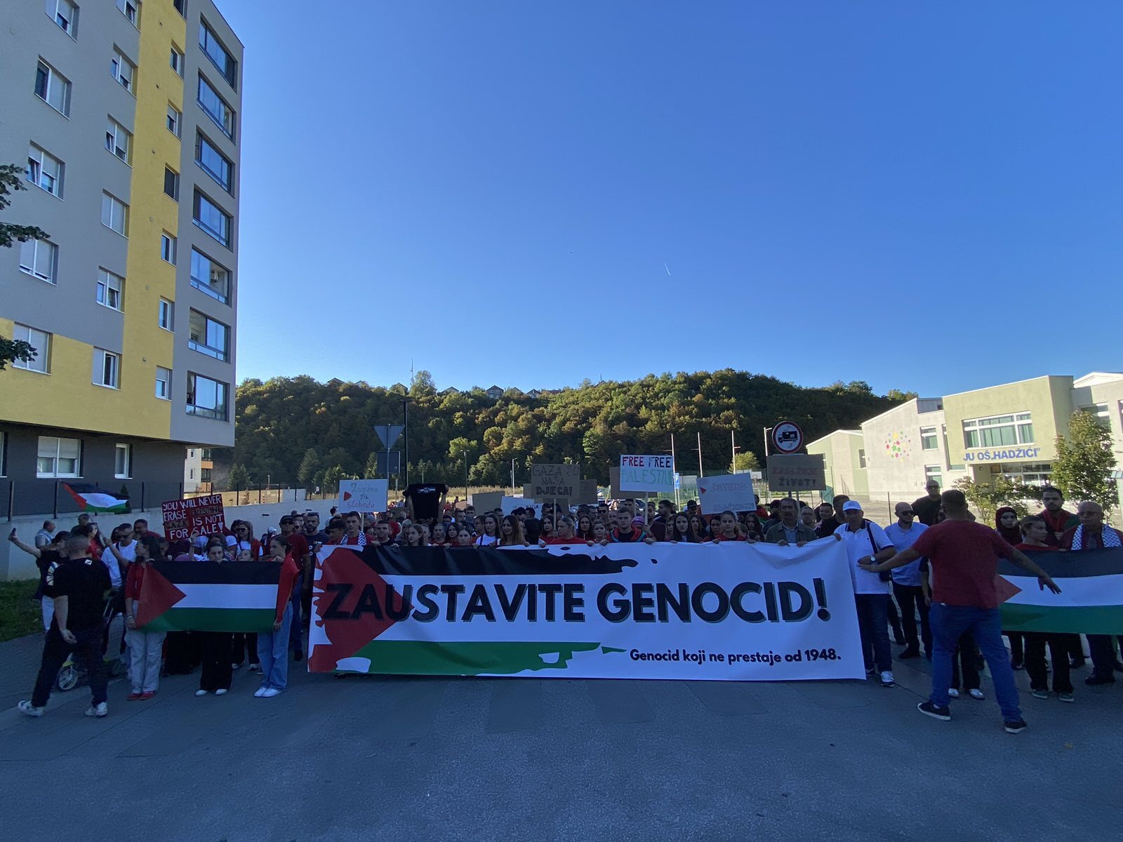 Nekoliko stotina građana, većinom mladih, okupilo se danas u Hadžićima u znak podrške Palestini, a njihova protestna šetnja počela je u 17:00 sati.