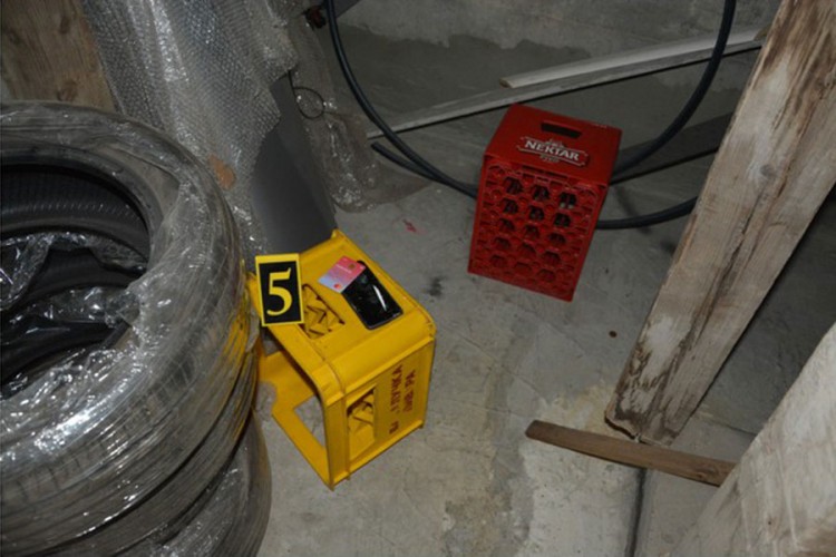 U magacinskom prostoru pronađen je mobilni telefon na kome se nalazila pripremljena linija od bijele praškaste materije koja svojim izgledom asocira na opojnu drogu spid, spremna za konzumaciju.
