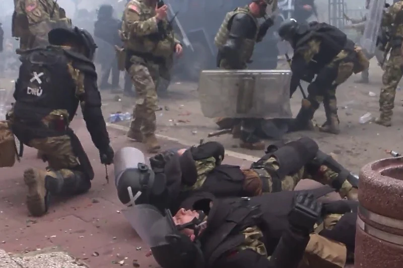 Kako se može vidjeti na videozapisu RSE, koji je veoma brzo postao viralan na mrežama, veliki broj pripadnika KFOR-a nalazi se na zemlji, dok ih drugi izvlače iz zone sukoba.