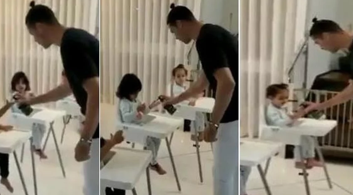 Cristiano Ronaldo teaches his kids how to #staysafe from coronavirus by washing their hands ?