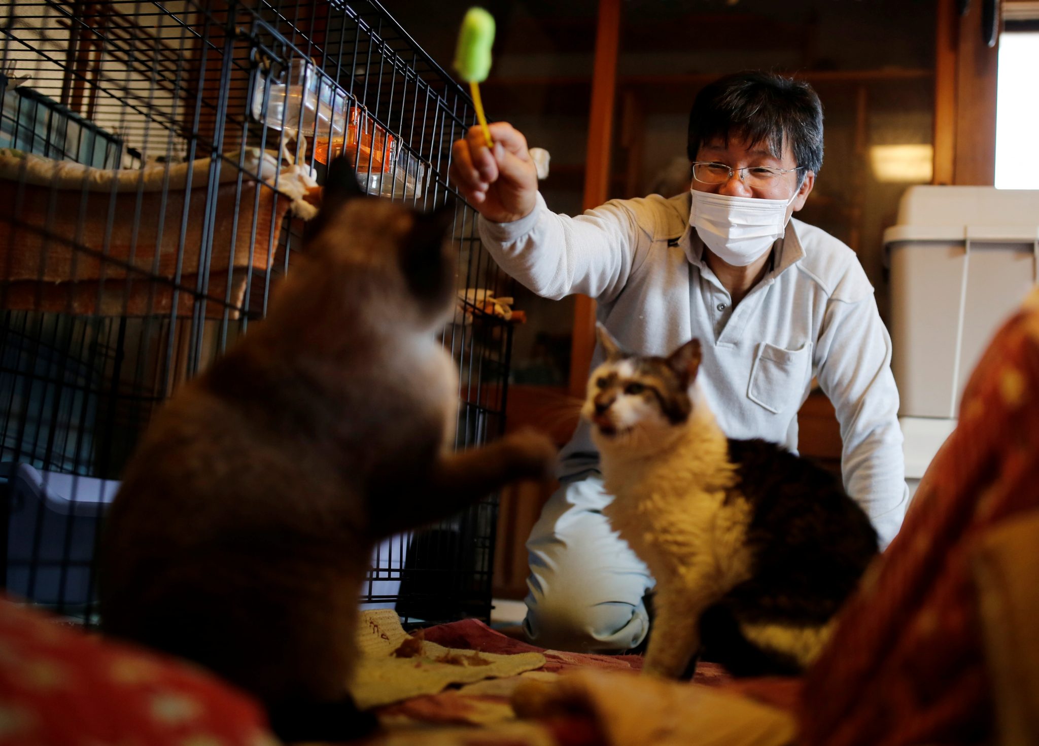 Yumiko Konishi, veterinar iz Tokija koji pomaže Katu, rekao je kako lokalni volonteri brinu o mačkama na njegovu posjedu, ali da je barem jedna uginula otkako je pritvoren.