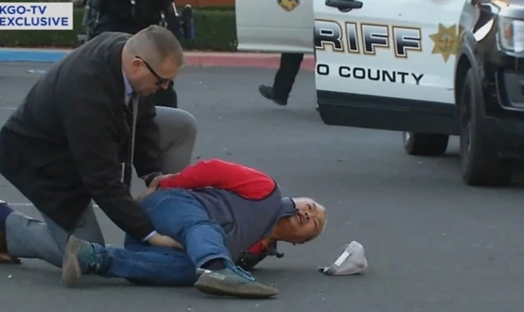 Snimka koju je objavio ABC 7 iz Half Moon Baya pokazuje uhićenje prilikom kojega dvojica muškaraca u civilu i jedan u uniformi, s oružjem u ruci, zapovijedaju muškarcu da iziđe iz automobila. Osumnjičenik za pucnjavu je izišao, srušen je na zemlju i pretražen. Ubrzo je na mjesto događaja stiglo još naoružanih policajaca u uniformi.