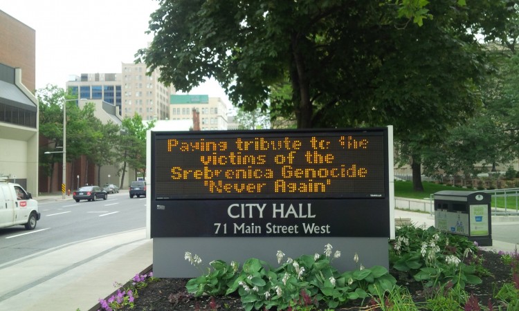 IGK navodi u saopćenju za javnost da su, u povodu 25. godišnjice od genocida u Srebrenici, gradonačelnici kanadskih gradova Toronto, Hamilton, London, Niagara Falls, Windsor, St. Jones, Halifax, Fredericton i Saskatoon proklamacijama proglasili 11. juli Danom sjećanja na genocid u Srebrenici.