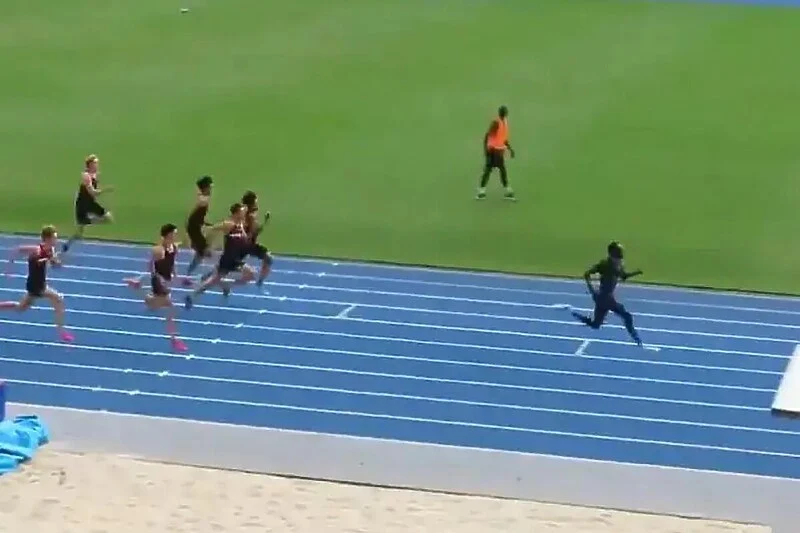 Ovaj veliki talent svjetske atletike prvih 40 metara trčao je u ravnini sa svojim rivalima, ali je onda “prebacio” u veću brzinu i ostale dječake ostavio daleko iza sebe.