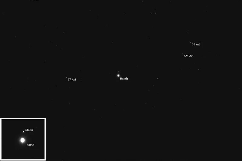 Rezultat snimaka s dugom ekspozicijom snimljenih 20. i 23. jula je fotografija Zemlje i Mjeseca usred zvjezdane pozadine koja potiče na razmišljanje, pružajući rijetku perspektivu mjesta Zemlje u svemiru. Sjaj naše planete i Mjeseca potiče od reflektirane sunčeve svjetlosti, smještene među zvijezdama koje pripadaju sazviježđu Ovna.