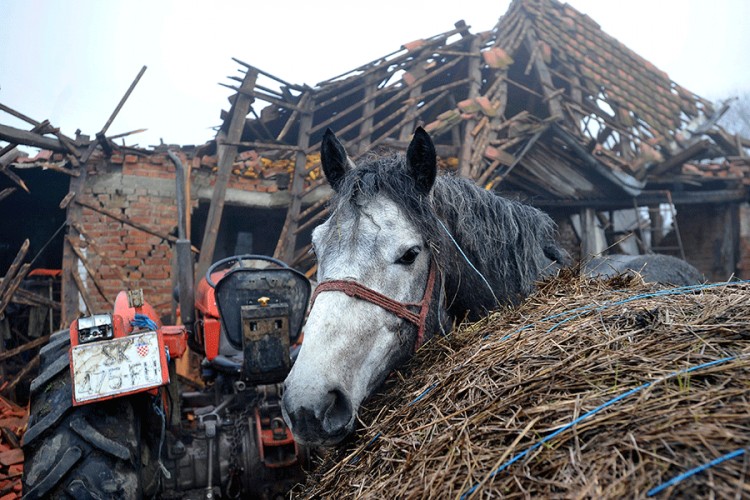 Prizor je to koji slama srce – Tomo Suknaić je iz srušenog imanja u Majskim Poljanama uspio spasiti mačku, psa i svog voljenog, najvoljenijeg konja, izvjestio je Index.