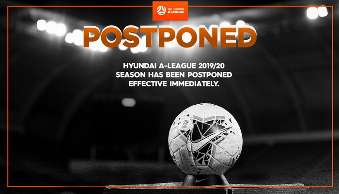 Australska nogometna A-league igrala je utakmice bez prisustva gledalaca do prošle sedmice, međutim, morali su prekinuti takmičenje zbog širenja koronavirusa. Preostalih pet kola prvenstva morali su odgoditi.