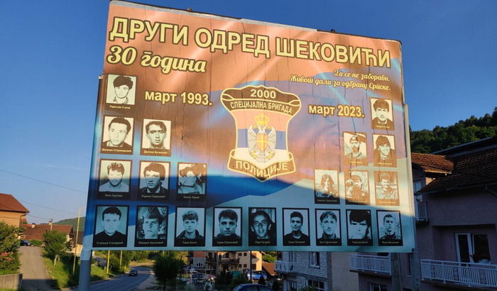 Na putu prema Srebrenici, u Vlasenici, nalazi se bilbord posvećen drugom odredu Šekovići, jedinici Policije Republike Srpske koja je izvršila egzekucije više od 1.300 ljudi u Kravici.