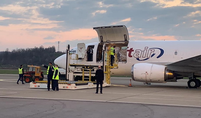 Na aerodrom Mahovljani sletio je i drugi avion sa dijelovima za mobilnu bolnicu, koju je, za eventualne potrebe liječenja tokom pandemije virusa korona, nabavila Vlada RS.