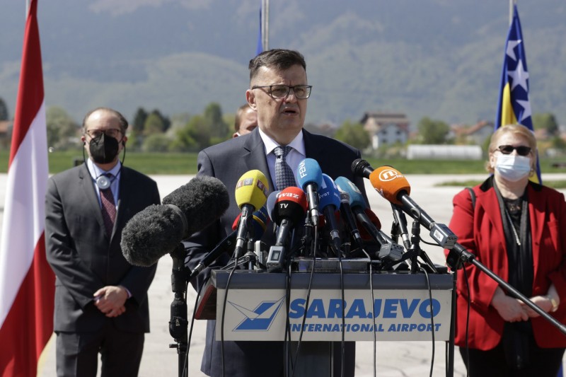 Tegeltija je kazao da se radi o prvoj, simboličnoj isporuci vakcina Bosni i Hercegovini iz mehanizma Evropske unije, te da će do augusta biti isporučeno ukupno 213.000 vakcina, koje će svake sedmice u određenim količinama dolaziti u BiH.