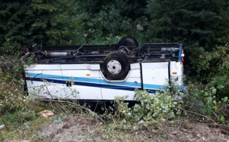 Od siline udara autobus se prevrnuo.