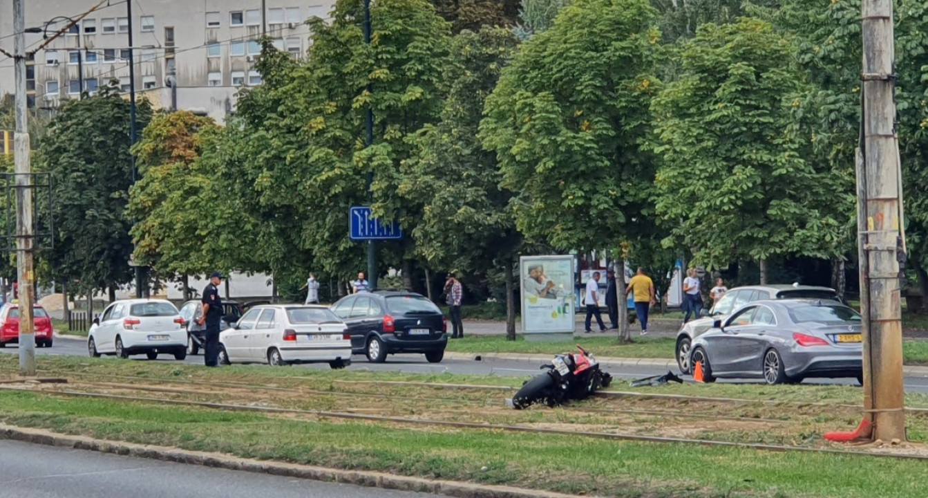 Vozač motocikla se zabio u automobil i završio na tramvajskim šinama.