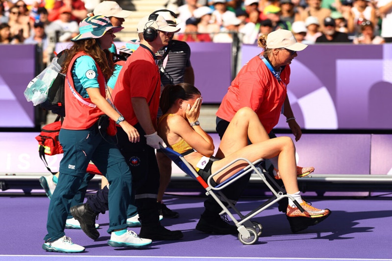 Ljekarski tim je brzo pomogao njemačkoj atletičarki koja je u kolicima napustila stadion i nije se vratila za nastavak takmičenja.