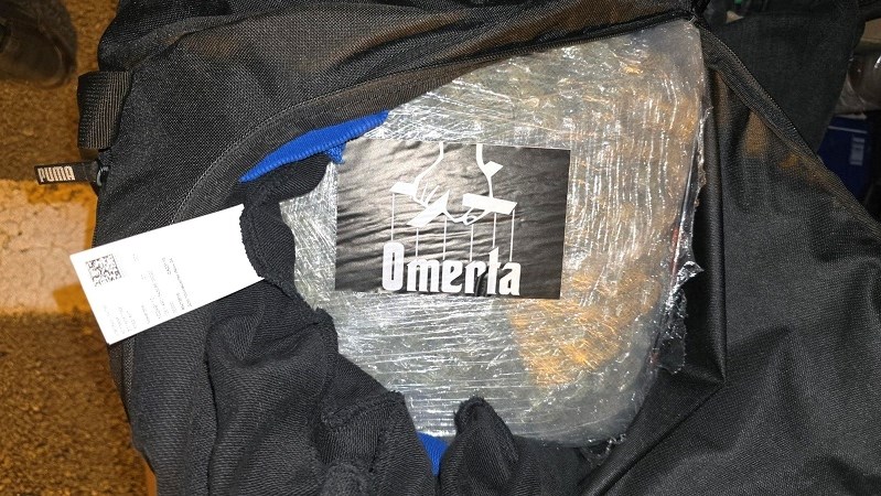 Pregledom prtljažnog prostora, ovlašteni carinski službenici Sektora za mobilne jedinice pronašli su u putnoj torbi s odjevnim predmetima tri paketa zamotana u PVC foliju s crnom naljepnicom i natpisom “Omerta”.