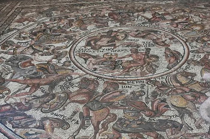 Mozaik prikazuje mitske scene, uključujući trojanske i amazonske ratove, a smatra se da su najrjeđi takve vrste.