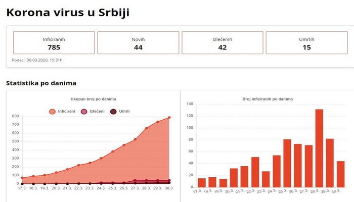 Јoš 44 osobe zaražene su koronavirusom u Srbiji. Ukupno je zaraženo 785 ljudi.