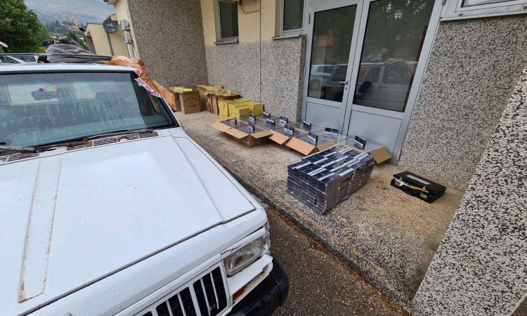 Policajci su u graničnom pojasu na sektoru A8 Lastva na sporednom šumskom putu na području Trebinja zaustavili i kontrolirali putničko motorno vozilo, kojim je upravljao državljanin BiH T. R., te uočili veću količinu cigareta, a kontrolirana je još jedna osoba bez dokumenata S. S., priopćeno je iz Granične policije BiH.