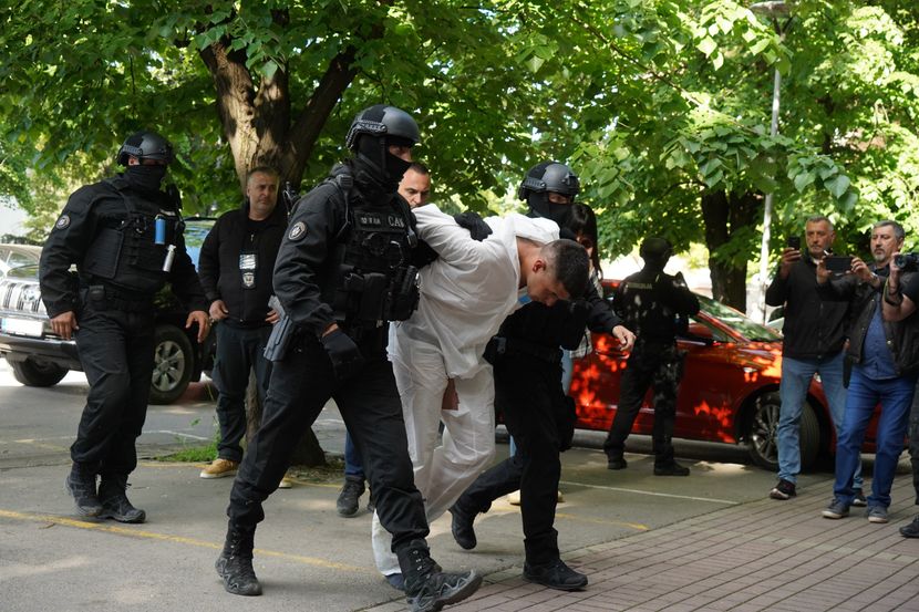 Dovezen je pod jakim policijskim snagama, a hodao je bos, u čarapama. Uveden je odmah u policijsku stanicu Smederevo. Tu će i biti saslušan u Tužilaštvu koje dijeli zgradu sa policijom. Biće mu određeno policijsko zadržavanje od 48 sati nakon čega će biti priveden na saslušanje u Više javno tužilaštvo u Smederevu.
