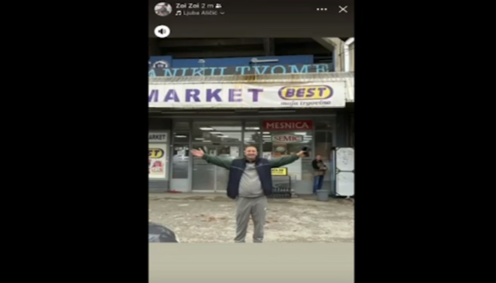 Tahirović je danas na Instagram nalogu objavio story u kojem stoji raširenih ruku ispred stadiona Fudbalskog kluba Željezničar u Sarajevu, dok u pozadini svira folk pjesma “Vrati se na mesto zločina”.