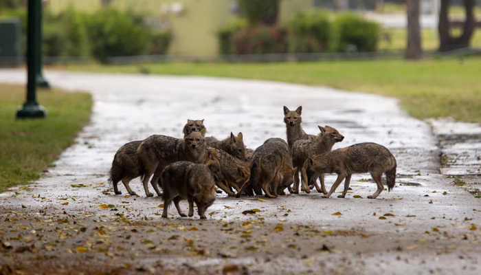Zbog ograničenja kretanja u cilju sprečavanja širenja zaraze novim virusom prostrani park je skoro prazan čime je otvoren put da šakali uđu u ovu urbanu oazu u centru grada.