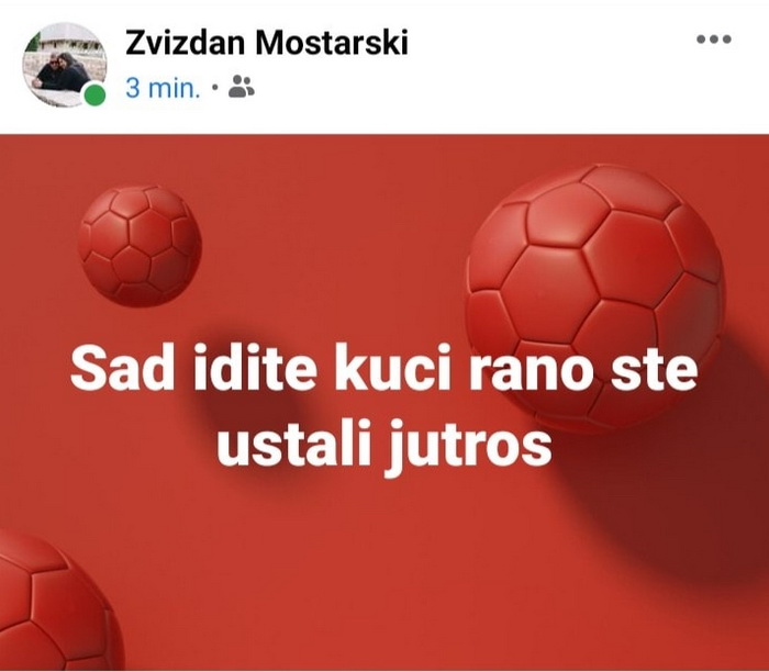 Na Facebook profilu pod imenom ‘Zvizdan Mostarski’ pojavio se post sljedećeg sadržaja: “Sad idite kući, rano ste ustali jutros”.