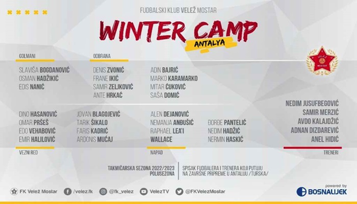 Nogometaši Veleža prvi dio priprema za nastavak sezone odradili su u Mostaru, a danas iz Sarajeva lete za Antaliju gdje će se zadržati do 10. februara.