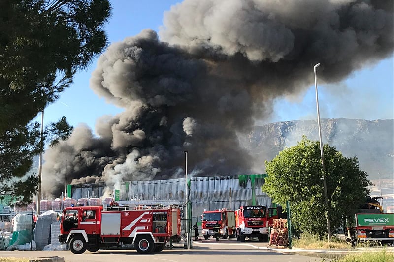 Danas oko 17:40 sati na području Kaštela kod Splita došlo je do velikog požara u skladištu hrvatskog trgovačkog lanca Pevex.