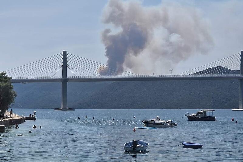 Fotografije koje su objavljene na društvenim mrežama pokazuju da se na Pelješcu trenutno vidi ogroman dim, a požar se može vidjeti i sa druge strane Pelješkog mosta.