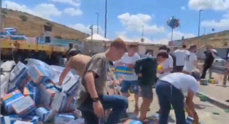 Grupa koja navodno stoji iza prosvjeda rekla je da prosvjeduje protiv držanja izraelskih talaca u Gazi. Snimke podijeljene na društvenim mrežama pokazuju kako  bacaju kutije s kamiona i gaze po njima.