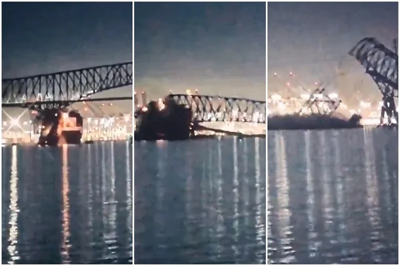 Snimci na društvenim mrežama pokazuju kako se most ruši nakon što ga je udario brod.