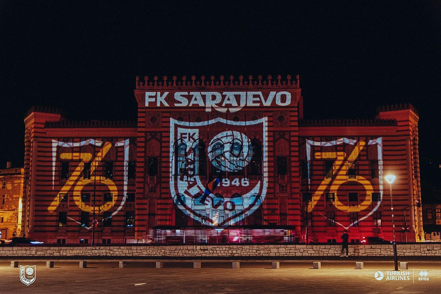NaslovnicaSportFudbalVijećnica osvijetljena bojama FK Sarajevo povodom 76. rođendana