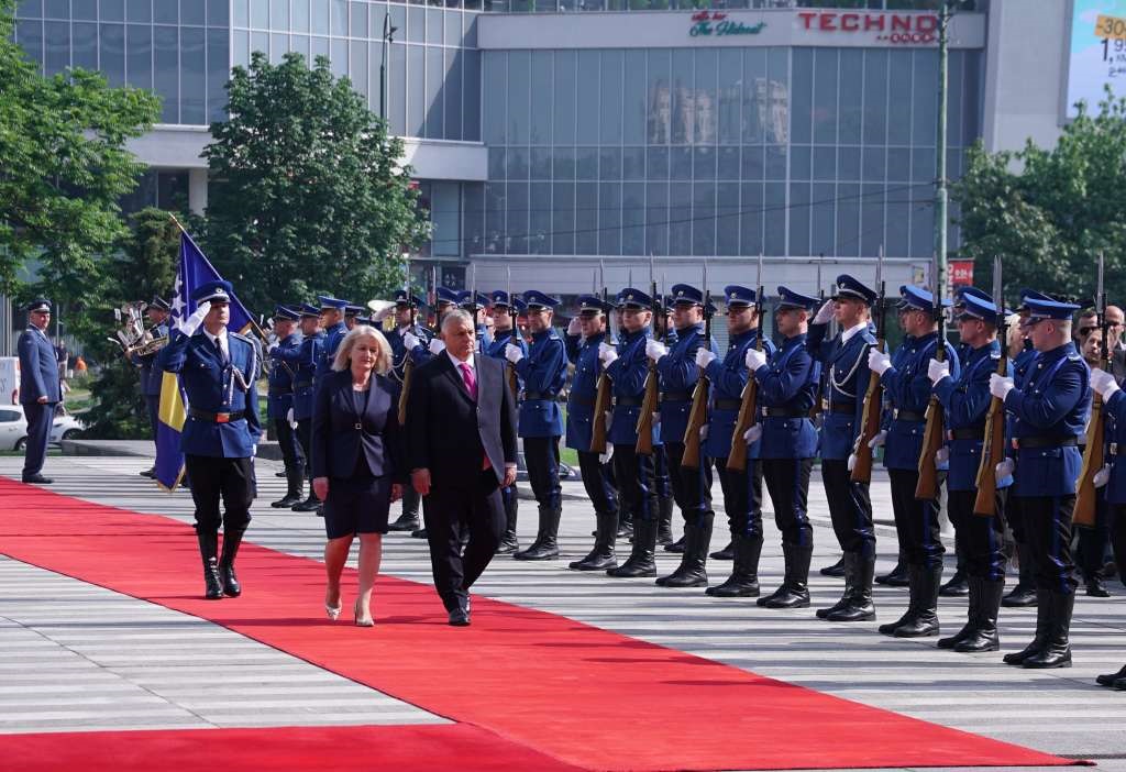 Premijer Mađarske Viktor Orban danas je stigao u službenu posjetu Bosni i Hercegovini. Svečani doček upličen je na platou ispred zgrade institucija BiH u Sarajevu, gdje je Orbana dočekala predsjedavajuća Vijeća ministara Bosne i Hercegovine Borjana Krišto.