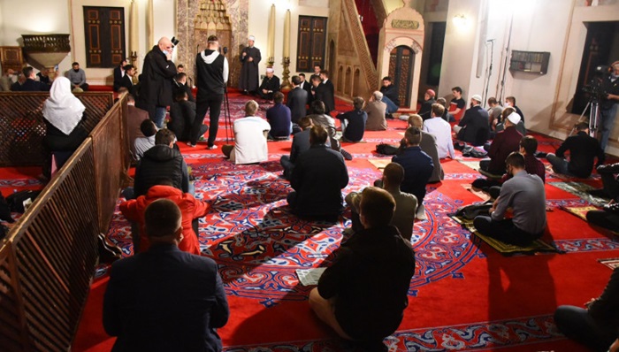 Gazi Husrev begova džamija uprkos epidemiji koronavirusa ispunjena je, a vjernici su pored teravih namaza prisustvovali prigodnom predavanju i dodatnom noćnom namazu.