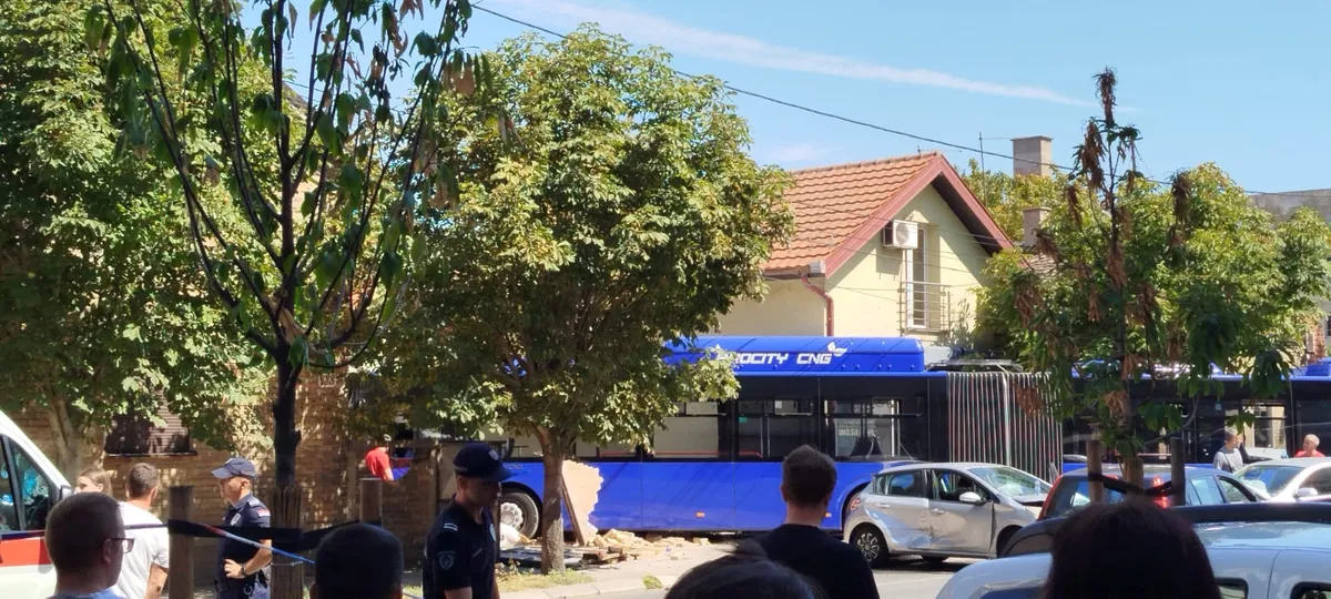 Autobus je jednim dijelom van puta, a od siline udarca „zakucao“ se u zid, piše Telegraf.rs
