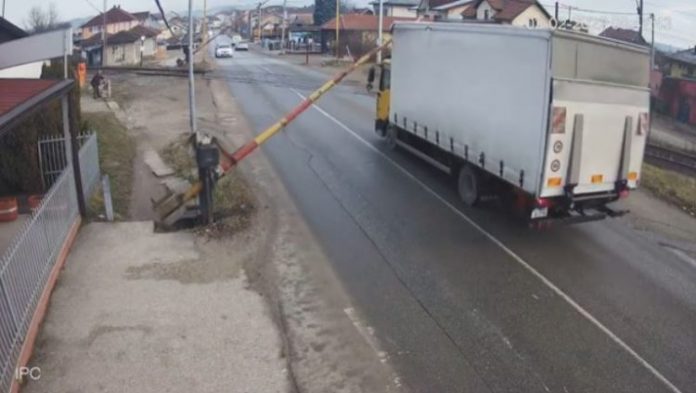 Željeznice Republike Srpske su na Facebooku objavili videosnimak na kojem se vidi kako vozač ne zaustavlja kamion na pružnom prijelazu “Zalužani” i zanemaruje svjetlosne signale upozorenje pa tako kamionom otkida rampu koja se u tom trenutku spuštala.
