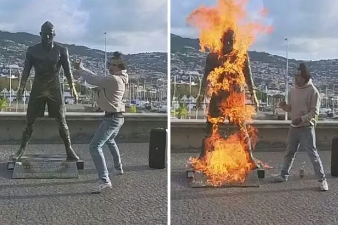 Policija na portugalskom ostrvu Madeira traga za muškarcem koji je zapalio statuu Cristiana Ronalda, snimio cijeli čin i objavio ga na internetu. Incident se dogodio u Funchalu, glavnom gradu Madeire i rodnom mjestu slavnog fudbalera.
